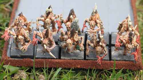 Die roten Farbtöne lassen sie sehr böse erscheinen. Die Skelette sind super, dass hat sicher lange gedauert. Allein die Vorstellung dass ich im Moment noch 30 Skelette, 20 Verfluchte und 17 Ghoule zu bemalen habe, wirkt bei mir "entsetzen" ![]()