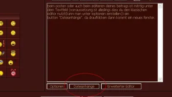 beim posten oder auch beim editieren deines beitrags ist mitrtig unter dem Textfeld (vorraussetzung ist alledings dass du den klassischen editor nutzt(kann man unter ioptionen einstellen)) ein button "Dateianhänge". da draufklicken dann kommt ein neues fenster.