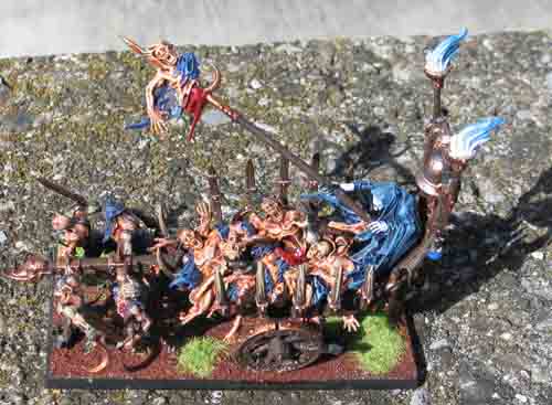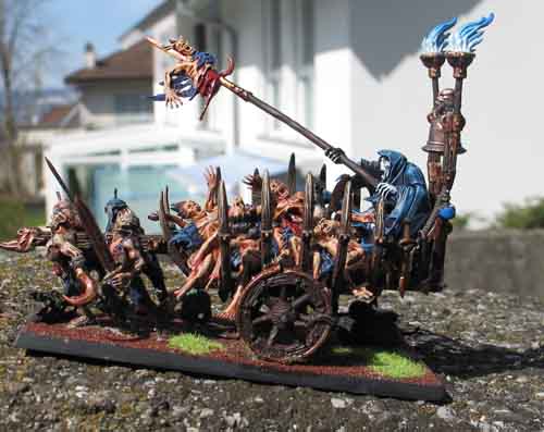 Die roten Farbtöne lassen sie sehr böse erscheinen. Die Skelette sind super, dass hat sicher lange gedauert. Allein die Vorstellung dass ich im Moment noch 30 Skelette, 20 Verfluchte und 17 Ghoule zu bemalen habe, wirkt bei mir "entsetzen" ![]()