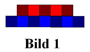 Wer jetzt kurz nachdenkt, wird feststellen, dass (ausgehend von 20mm-Bases auf beiden Seiten) eine Breite von 7 Modellen niemals verkehrt sein wird, da der Gegner praktisch immer mindestens 5 Modelle breit aufstellt und die 7 eigenen Modelle somit auch immer in den Nahkampf kommen. Dazu mal eine Skizze (Bild 1). Die roten Modelle sind Gegner, während die blauen Modelle die eigenen Truppen darstellen.