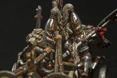 augen sehen bei dem einen ok aus, aber bei dem anderen zu groß bzw. unordentlich, aber ich weiß auch das es schwer ist und gerade die älteren modelle und viele elfenköpfe unglücklich für augen gestaltet wurden, also nimm das bitte nicht so ernst.der rest sieht wirklich hervorragend aus. vor allem das banner. respekt. wie hast du auf beiden seiten so ein gutes spielgelbild der anderen seite raufbekommen? irgendeine schablone oder ist das tatsächlich freeHand?
