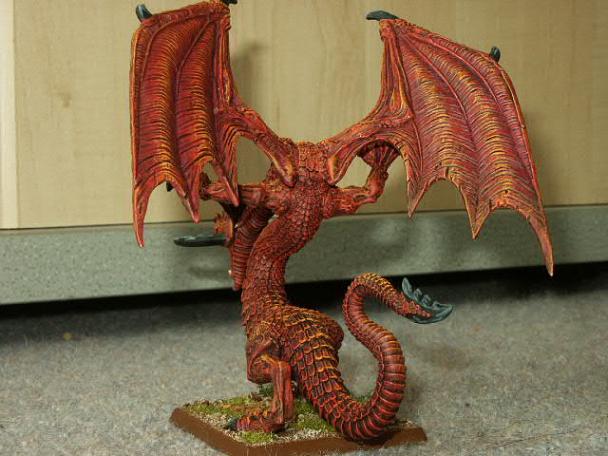 Du wirst es nicht glauben, aber dieser Drache ist schlichtweg nur gebürstet. Allein Krallen/Horn sind normal bemalt :unschuldig:. Das Modell bietet sich zum bürsten allerdings auch an. Zuerst wollte ich den Unterbauch noch Schichten, habe es dann aber so gelassen.