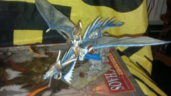 So, mein Frostphönix ist endlich fertig. Da mir das Modell aber zu Comichaft war, habe ich die "frostige Seite" noch etwas unterstrichen. Leider nur Handykamera, der Schnee/Frosteffekt auf den Schwingen kommt hier kaum zur Geltung.
