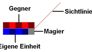 Die Streitfrage ist nun: Kann ein Magier, der am Rande seiner Einheit steht (und dort auf selber Höhe abschließt wie der Gegner), eine Sicht aus dem Nahkampf heraus ziehen kann (siehe Bild).