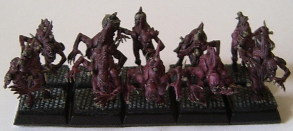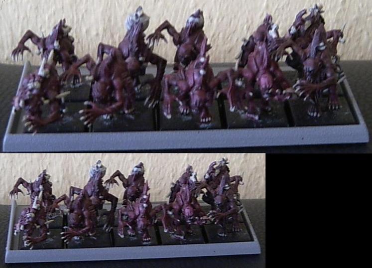 Modelle: Die ganz normalen Gruftghule. Das größte Problem hierbei wird wahrscheinlich, dass sie sich farblich schlecht mit dem Rest der Armee verbinden lassen. Vermutlich sollte aber ein einfaches Tuschen mit einem dunklen Rotton ausreichen,