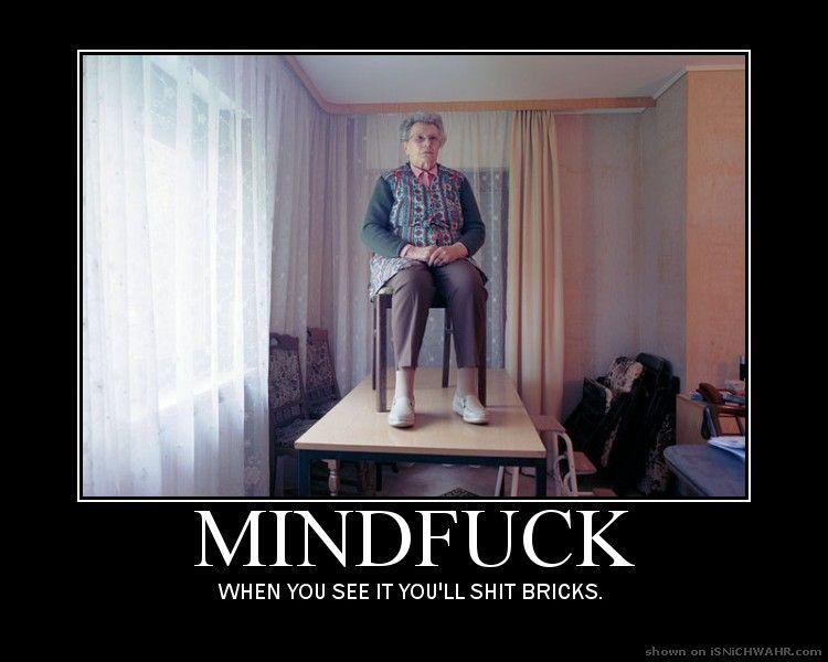 [...] Thematisch stark verwandt ist der sogenannte Mindfuck bei dem eine als „wahr“, „real“ und „gegeben“ akzeptierte Realität aufgebrochen wird und völlig neue Grundmanifeste geprägt werden, die eine kognitive Dissonanz erzeugen, die oft in der Kunst absichtlich erzeugt wird. Die unter Immersion, virtueller Realität und simulierter Realität genannten Beispiele in Literatur und Film überlappen sich stark, obwohl die Ursprungskontext der jeweiligen Begriffe ein anderer ist.Im Falle der oberen Bilder sollte man mal genau hinschauen.