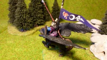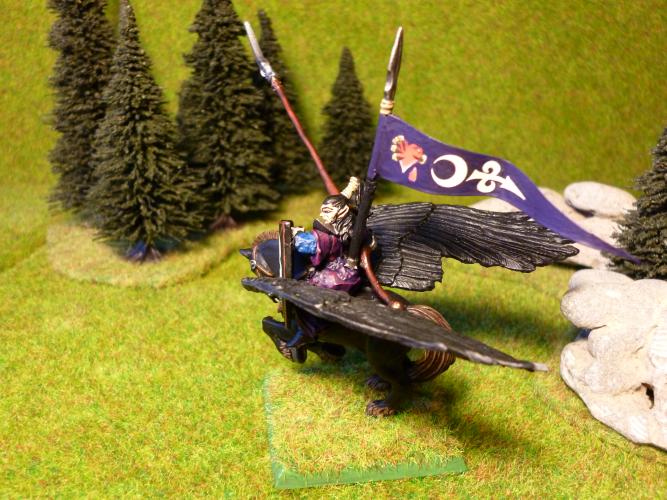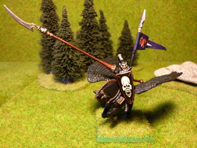 Basis ist der alte Baltasar Gelt des Imperiums (Pegasus und Beine), Oberkörper ist der alte Bestienmeister zu Fuß. Die Lanze stammt von den alten Echsenrittern wo ich die Hälfte der Mistgabel des Bestienmeisters auf Manticor montierte. Die Bannerstange kommt.....aus meiner Bitzbox, keine Ahnung.