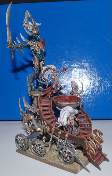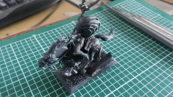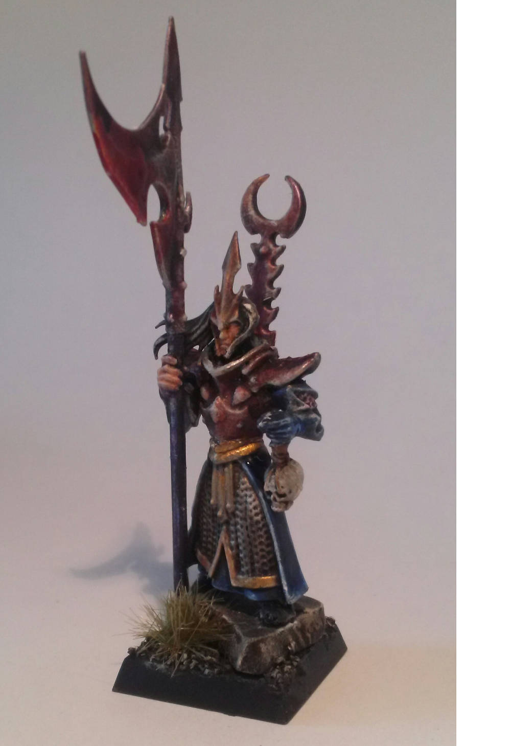 Mein Kouran Darkhand. Nach einem halben Jahr mit Warhammer und den Dunkelelfen möchte ich nach und nach die besonderen Charaktermodelle des Armeebuchs testen. Nach Morathi und Hellebron ist jetzt Kouran dran.