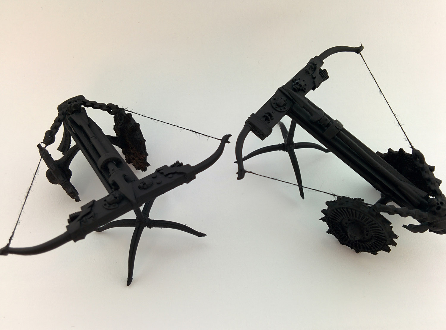 Die Reste reichten sogar noch um (zusammen mit ein paar Bits aus den alten Dunkelelfenkriegerboxen) zwei Speerschleudern zu bauen.