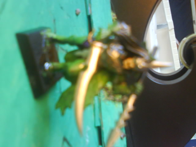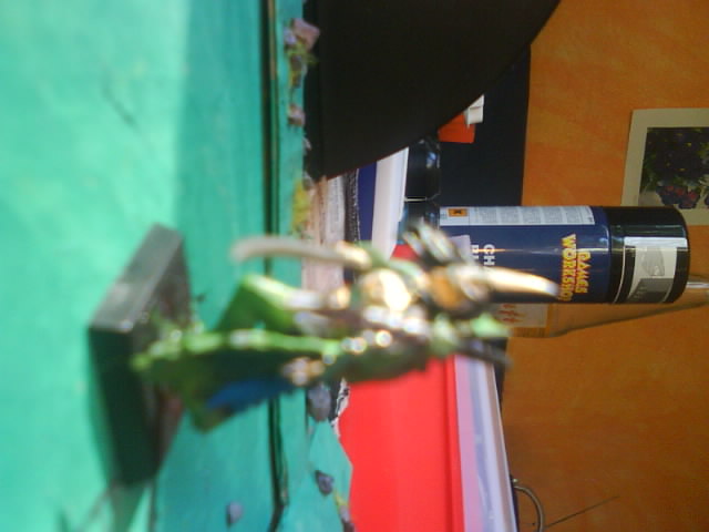 und das letzte ich weiuß die sind sehr shclkecht und die figur is noch nich fertig gemalt aber das ungefähre schema sollte man erkennen also schuh und handschuhe goblin green umhang ebenfalls nur die schuppen enchanted Blue