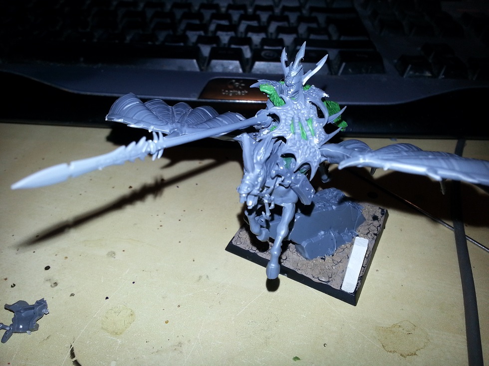Basis ist der alte Baltasar Gelt des Imperiums (Pegasus und Beine), Oberkörper ist der alte Bestienmeister zu Fuß. Die Lanze stammt von den alten Echsenrittern wo ich die Hälfte der Mistgabel des Bestienmeisters auf Manticor montierte. Die Bannerstange kommt.....aus meiner Bitzbox, keine Ahnung.