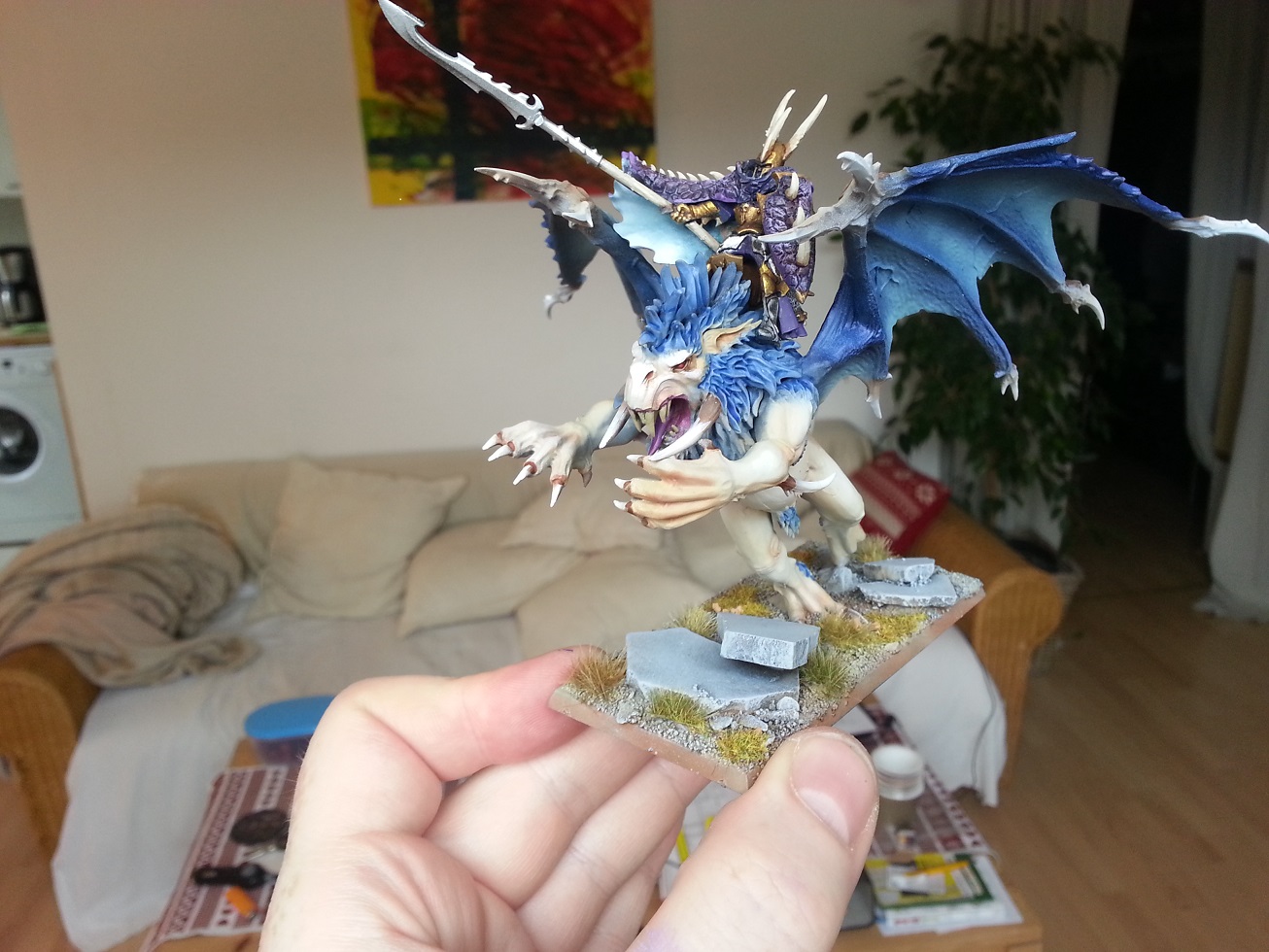 Mein Kouran Darkhand. Nach einem halben Jahr mit Warhammer und den Dunkelelfen möchte ich nach und nach die besonderen Charaktermodelle des Armeebuchs testen. Nach Morathi und Hellebron ist jetzt Kouran dran.