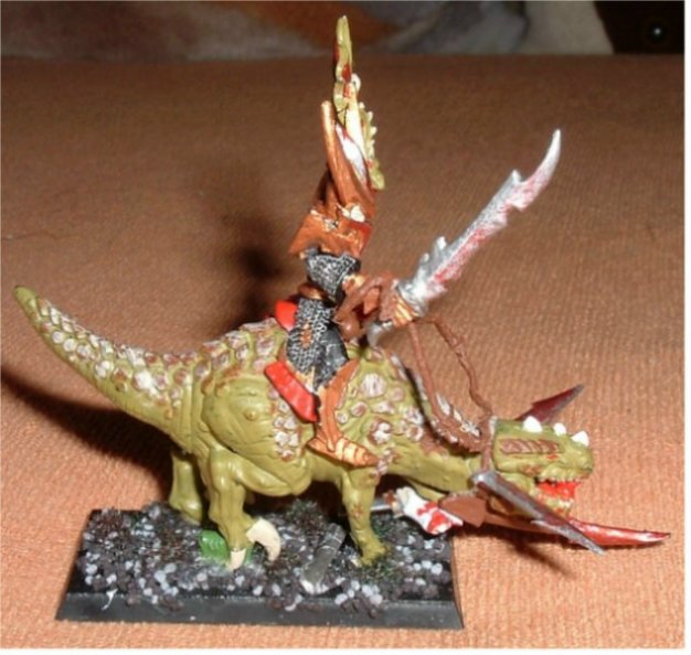 Die Echse scheint Schwarz/Braun zu sein, sieht in echt wahrscheinlich was besser aus. Das glänzen stört wirklich etwas und beim Kommandant kann ich dir nur empfehlen, das hässliche Schwert abzuschneiden und aus deiner Krieger-Box (Du hast die Teile doch aufgehoben?!) nimmst du einen Speer, der dir gefällt schnibbelst die Klinge ab und klebst die an den ER, sieht tausendmal besser aus und einfach is es auch noch.