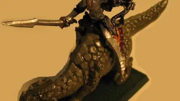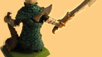 • Also ich weiss net, ob wir die selben Bilder gesehen haben, aber die Echse is eindeutung mit einer Mischung aus Camo Grenn und Chaos Black grundiert und die Schuppen mit einer Mischung aus Camo Green und Skull white. Wie meinst du des mit dem Speer aus der Kriegerpackung? wie soll des gehen?