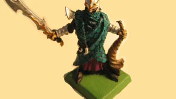 • Die Echse scheint Schwarz/Braun zu sein, sieht in echt wahrscheinlich was besser aus. Das glänzen stört wirklich etwas und beim Kommandant kann ich dir nur empfehlen, das hässliche Schwert abzuschneiden und aus deiner Krieger-Box (Du hast die Teile doch aufgehoben?!) nimmst du einen Speer, der dir gefällt schnibbelst die Klinge ab und klebst die an den ER, sieht tausendmal besser aus und einfach is es auch noch.