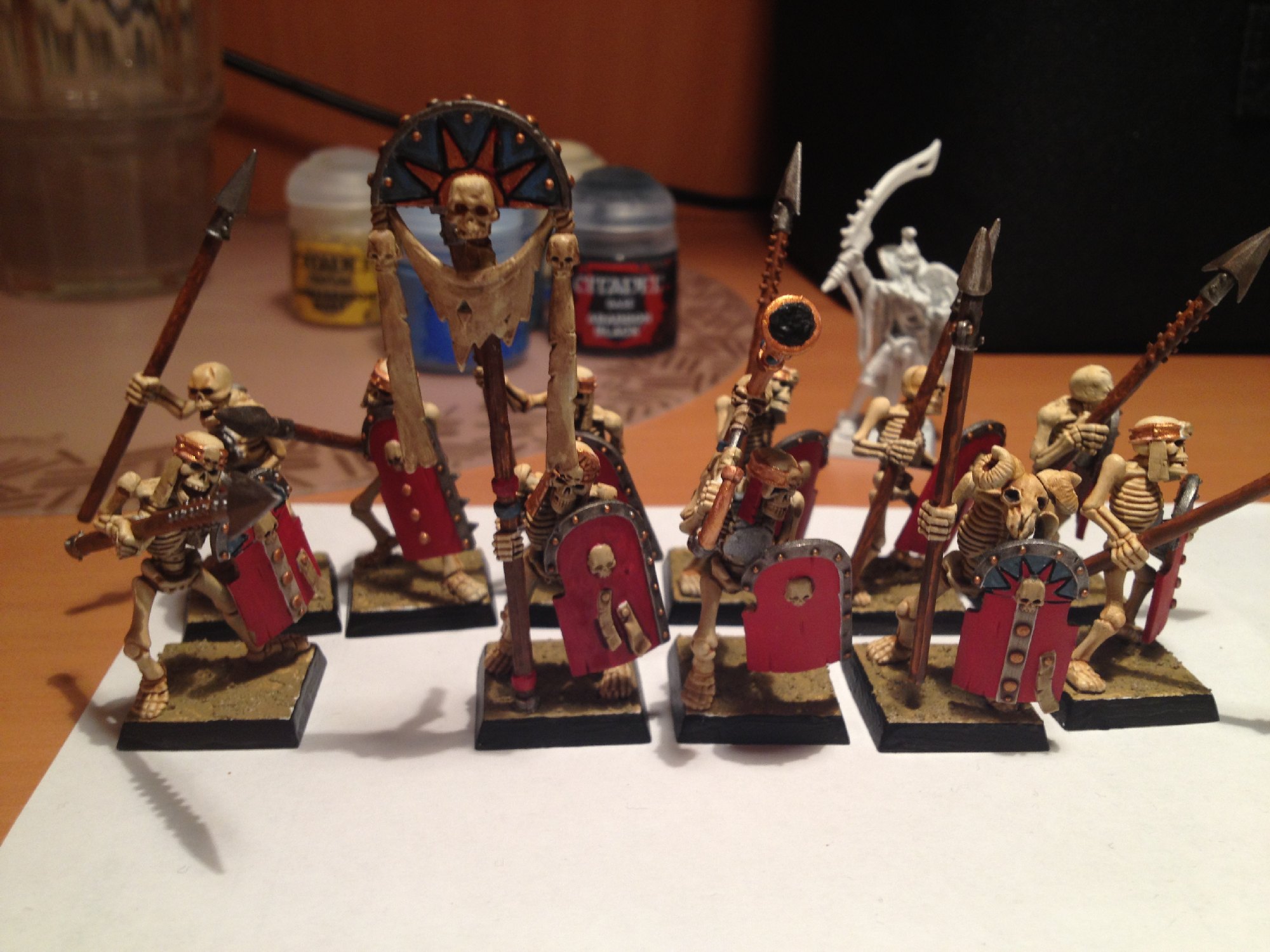da full command für die tomb guards fertig ist kommen nun die soldaen dran. 4 sind fertig, 3 noch in der box zum bemalen.