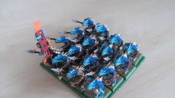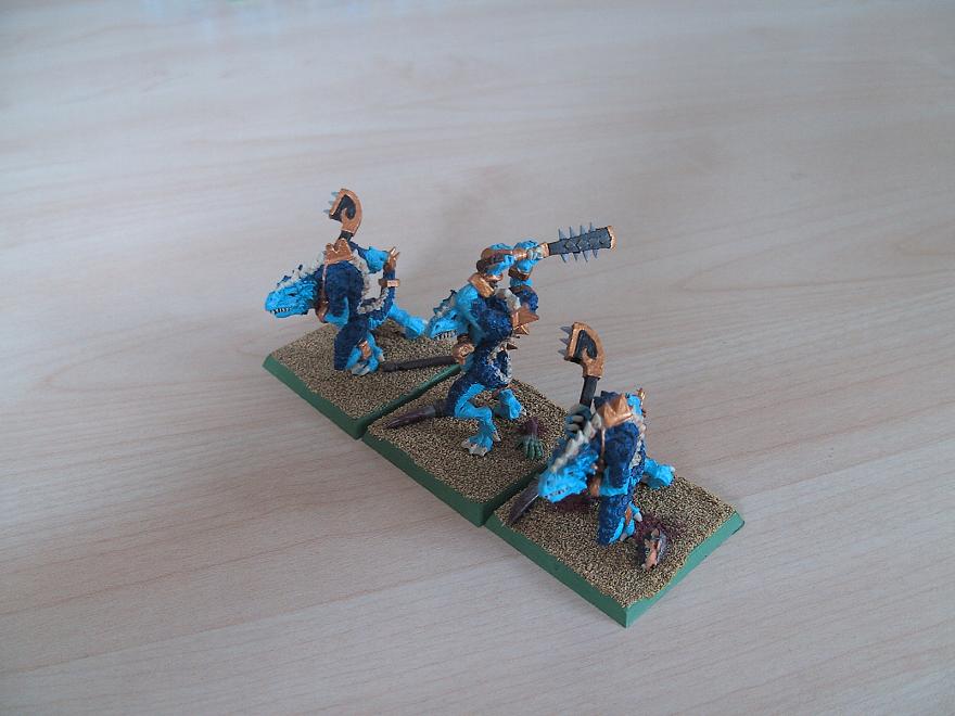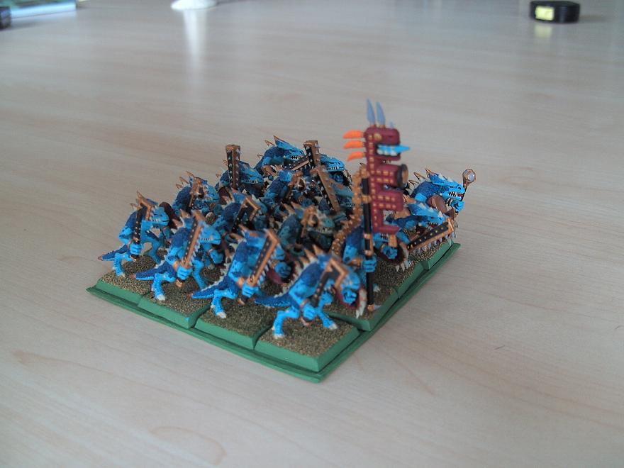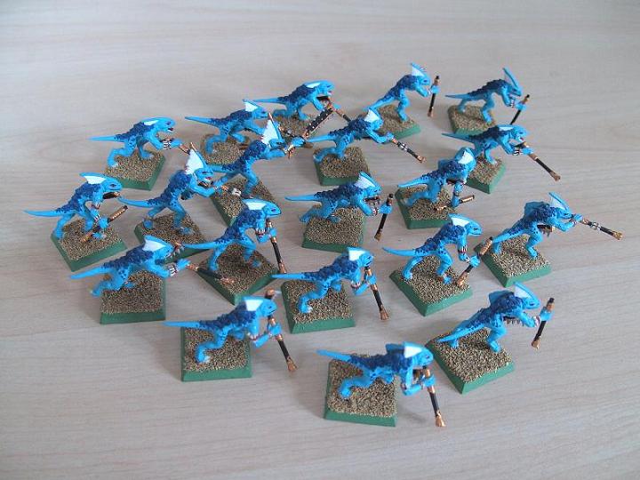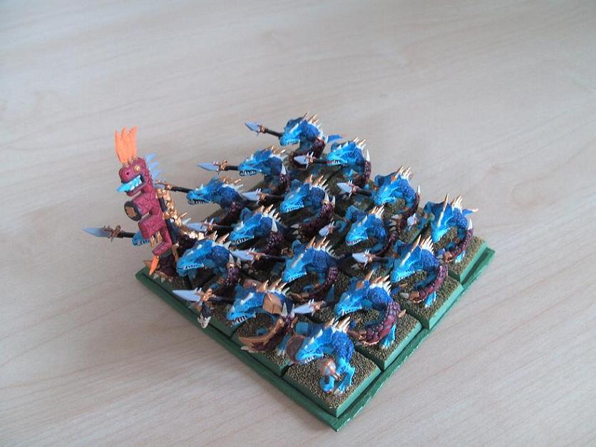 Anläßlich wahrscheinlichen Besitzerwechsels meiner Echsenarmee stell ich mal ein paar Bilder von ihnen rein. War meine erste Armee und die Sauruskrieger so ziemlich die ersten Minis von mir (außer 3 Langbärten)