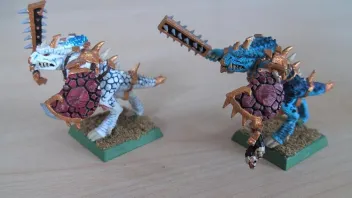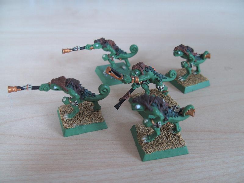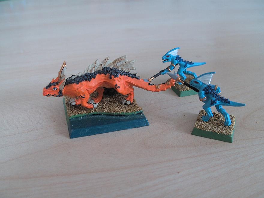 @DdoWk: Ich war jung ^^. Ne, aber heutzutage würd ich die Echsen auch anders bemalen, ich glaub irgendwas mit hellem, aber nicht giftigem Grün, also irgendwo zwischen Camo Green und Bleached Bone, dazu eher fließende Übergänge von Schuppen zu normaler Haut, wenn überhaupt einen Unterschied (vllt eben ein wenig heller die Unterseite).