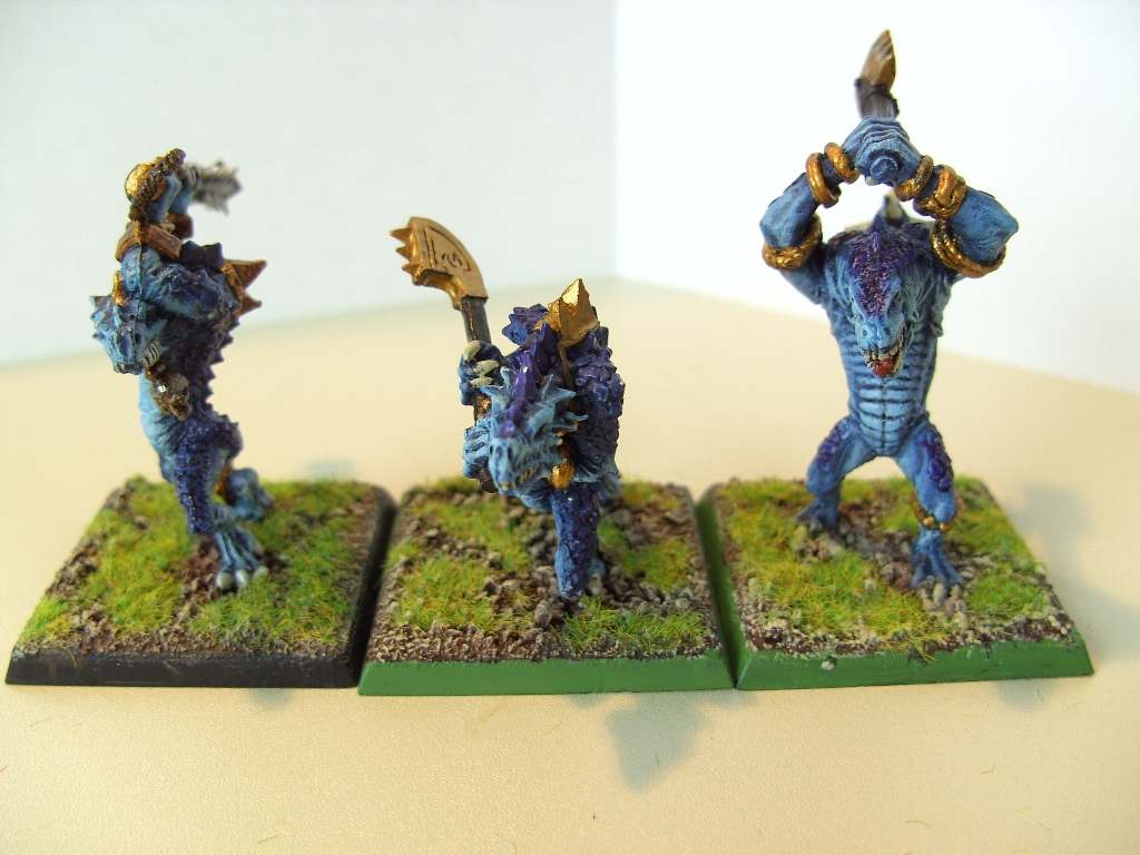 Robert: Du könntest einiges mehr aus deinen echsen rausholen indem du zB einfach ein wenig inks verwendest. Auch etwas bürsten würde nicht schaden. Aber als angemalt gehen sie allemal durch und zum Spielen reichts :).