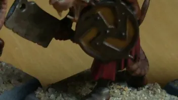 Kürzlich habe ich mal eine andere Variante versucht und mehr oder minder alles im hellen Cadian Fleshtone bemalt und nur die Partien, die deutlich zu erkennendes Fell aufweisen, mit Bestial Brown bemalt -> siehe zweites Bild.