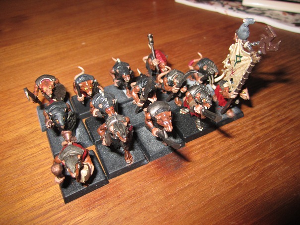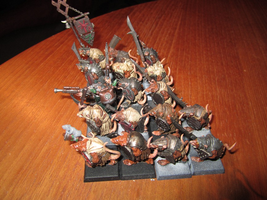 Außerdem werd ich bald meinen Vermin Clan Lord von AoW mit der Armeestandarte vom Rücken des Blutinselkriegsherren in der Hand ausstatten und ihn so zum Armeestandartenträger machen.
