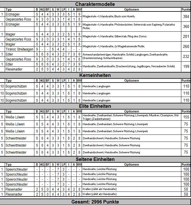 und nur zur info ich kann ein charaktermodel mit seinem reittier (Pferd, Monster außer Flieger und Streitwagen) immer einer Einheit anschließen regelbuch S.72, aber das gehört hier nicht her.