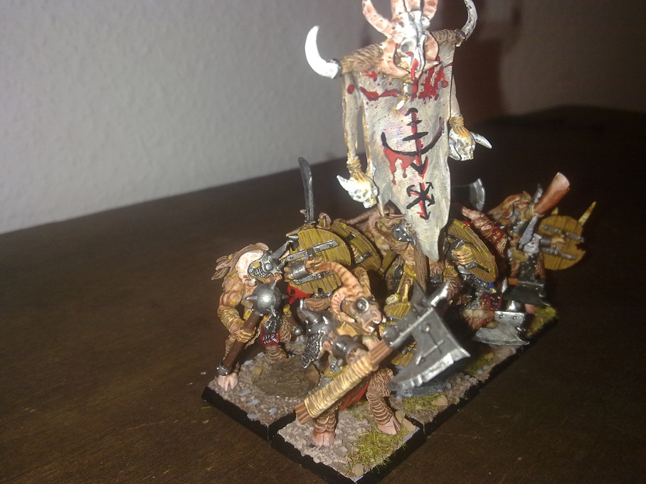 Das Banner sieht auch gut aus, aber warum steht der Träger auf der erhöhten Base?Macht aber was her deine klein Gorherde :0)