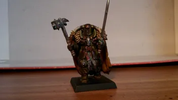Die Metallteile könntest du eventuell noch ein wenig bearbeiten. Sieht noch ziemlich matt vom Tuschen aus. Hier bietet es sich an mit einer Metallfarbe weiter zu akzentuieren. Dann kommt das Leuchten wieder, es sieht mehr nach Metall aus, wirkt realistischer und kampferprobter. Auch bei den Hörnern bietet sich eine zweite Farbe nach dem Tuschen an.