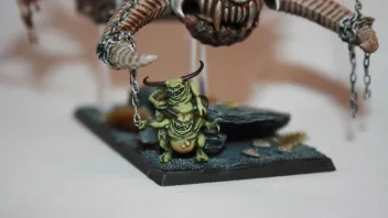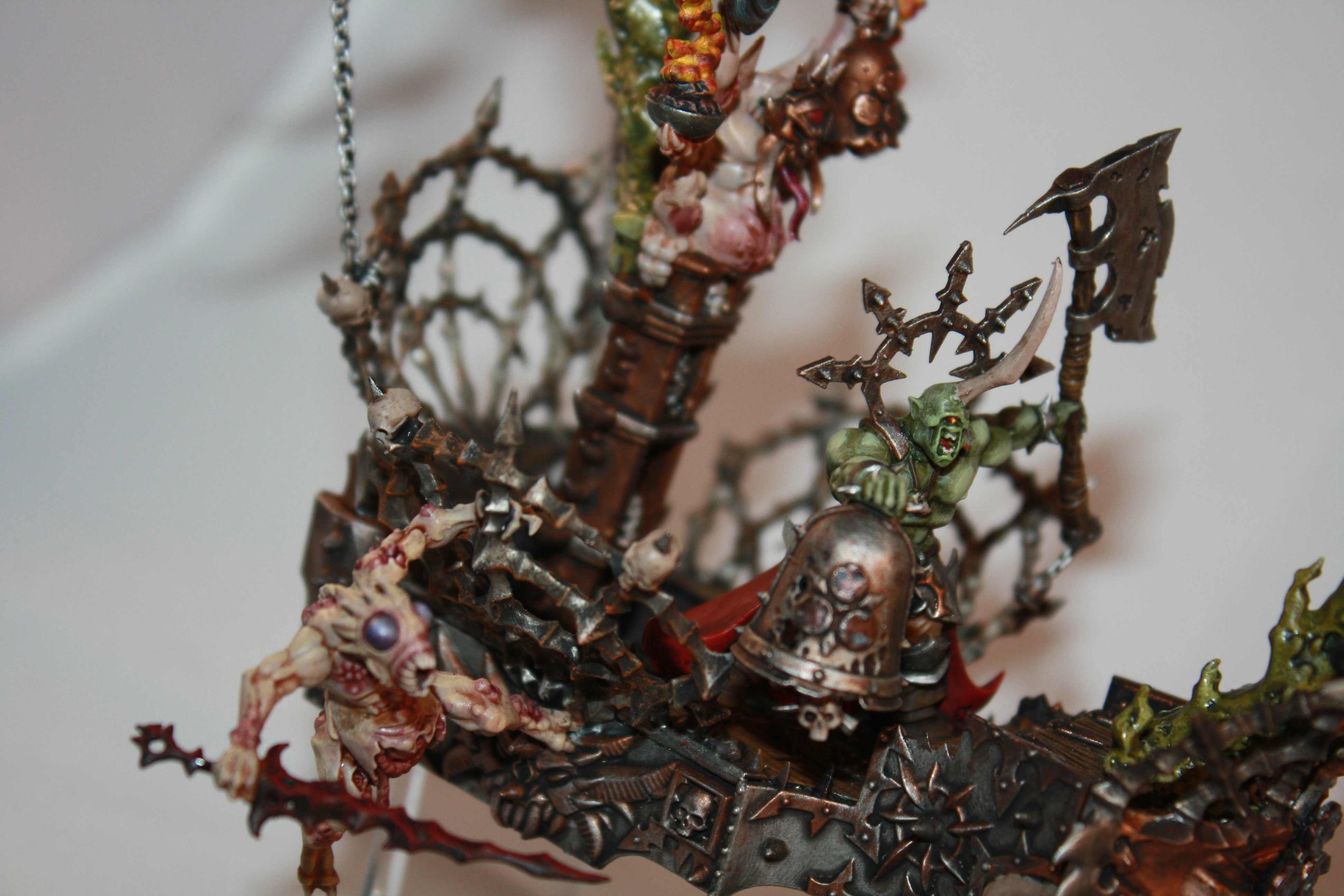 Lediglich die Grasbüschel würde ich noch abschattieren, die sind mir ne Spur zu krass auf der sehr dunklen Base.- Der fliegende Schrein ist für mich das absolute Highlight und (bisher) definitiv dein Meisterstück. Da passt beim Konzept, der Umsetztung, dem Umbau und der Bemalung absolut alles und du bewegst dich da kreativ auf allerhöchstem Niveau. Genau DAS sind dann wirklich die Sahnestücke in unserem Hobby und ich garantiere dir, dass das Vieh (allein schon von der Größe her) aus jeder Armee heraussticht.