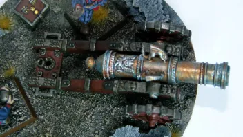 • Sieht super aus. Gefällt mir echt gut. Die Idee mit den magnetisierten Armen gefällt mir auch. Das gestaltete Base für die Kanone sieht auch echt gut aus. Spieltechnisch ist das aber leider etwas unpraktisch. Ich hab auch sowas gemacht und das große Base stört doch manchmal.