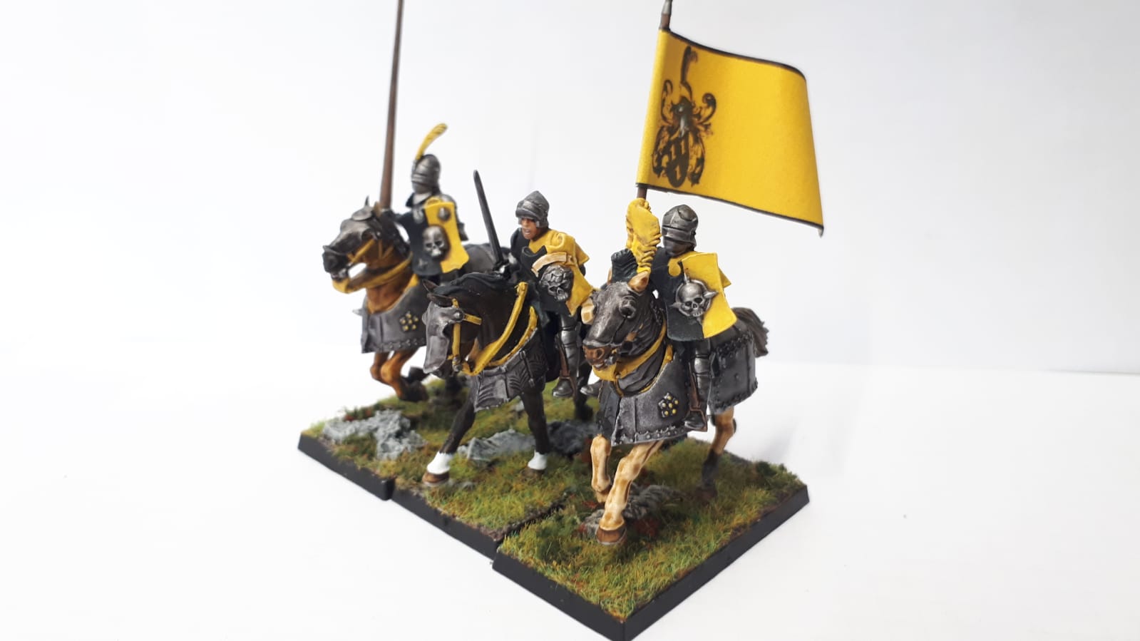 Alle Ritter ob zu Pferd oder auf Demigreif reiten unter dem Banner des wittringer Ritterordens.