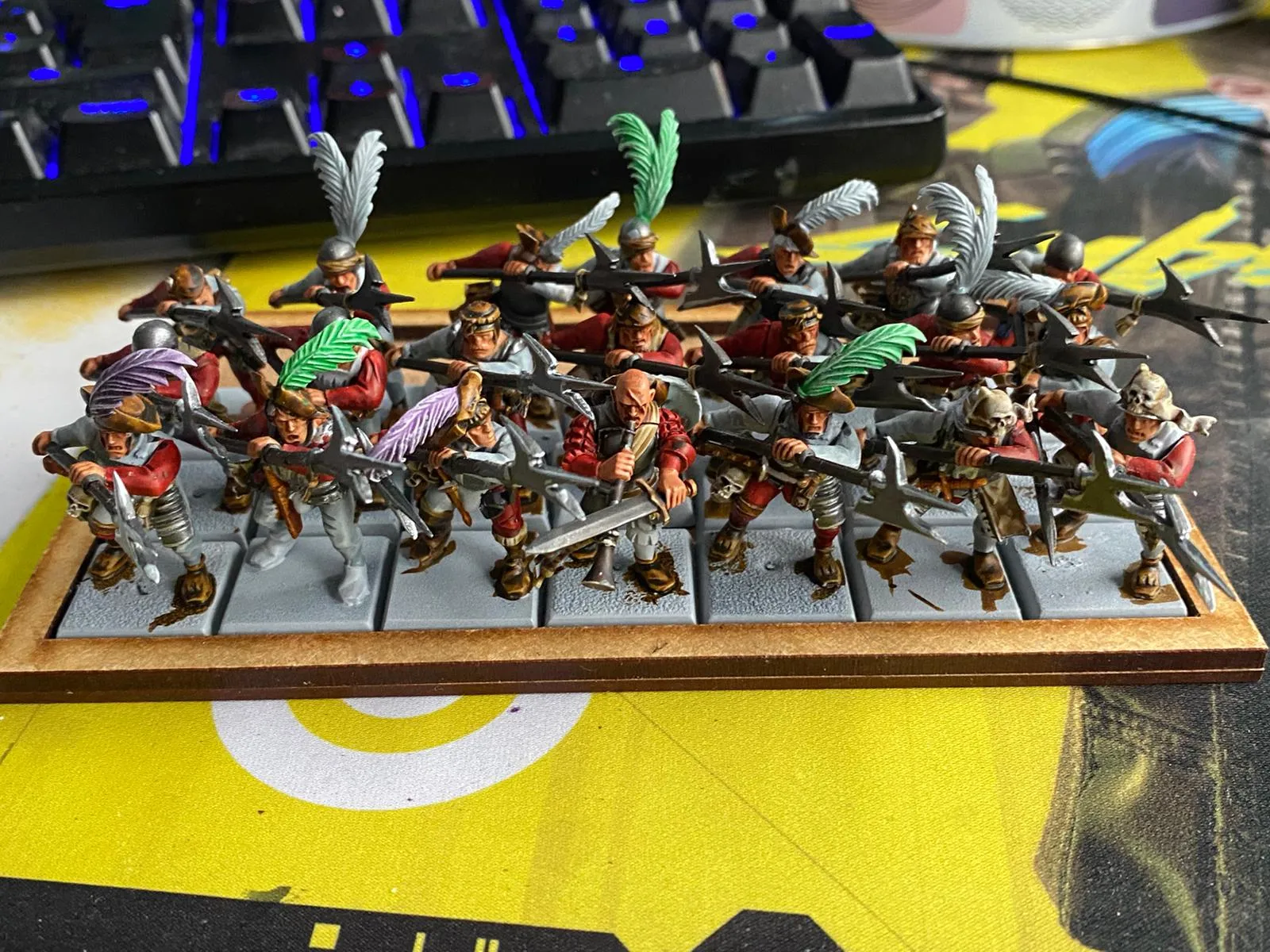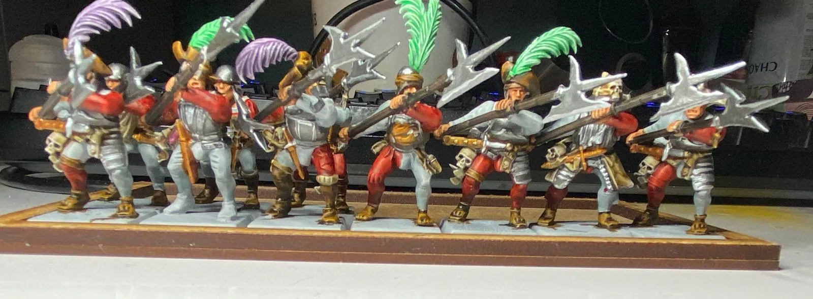 Und dann hat man noch keine Base gemacht - und sind wir ehrlich.. die Motivation 60 Hellebardiere anzumalen.. naja, ich hab die nicht, da such ich nach schnellen Möglichkeiten - wobei ich halt der "Spieler" bin - ich hab den Anspruch an Vitrinen-Qualität leider nicht.
