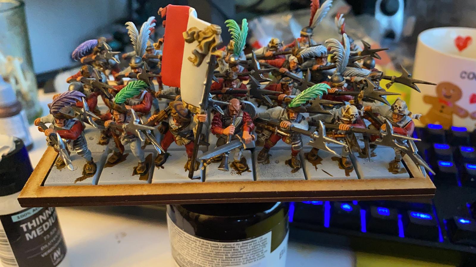 Und dann hat man noch keine Base gemacht - und sind wir ehrlich.. die Motivation 60 Hellebardiere anzumalen.. naja, ich hab die nicht, da such ich nach schnellen Möglichkeiten - wobei ich halt der "Spieler" bin - ich hab den Anspruch an Vitrinen-Qualität leider nicht.