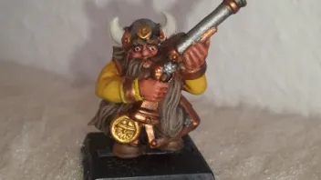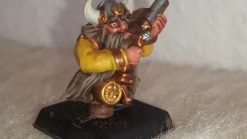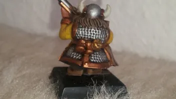 So..das ist jetzt mein neuer König und er bringt viel zwergiges mit sich hab aus nem Blood Bowl Blitzer noch nen Standartenträger gebastellt und Bugman hält die andere seite..Ja ich weis ,die Bemalung jajaja....ich weis...