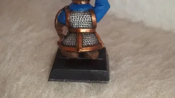 Ich mache es bei den Metallteilen bzw. in erster Linie bei den Kettenhemden auch so, dass ich sie nur bürste und somit halt die schwarzen Lücken bleiben. Danach benutze ich dann die schwarze Tusche, um die Wirkung der schwarzen Stellen (Vertiefungen u. Schattierung) zu erhöhen. Bei Helmen kann man es z.B. auch machen, dass man sie erst nur bürstet und danach mit dem entsprechenden Silber bemalt, so hat man die Möglichkeit bestimmten Stellen wie z.B. Zwischenräumen eine andere Wirkung zu verleihen, indem man sie halt nicht übermalt.