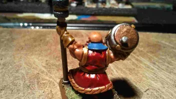 Nicht das es schlecht ist oder so ich sehe eben das du dir mühe gibst und vielleicht ist das ja aber auch von dir so gewollt aber als neutraler Betrachter sage Ich dir eben das gerade so schöne detailierte Stellen wie der Helm,der Schild von dir wiklich nur in gold ertränkt wurden und eine etwas dezentere malweise deutlich besser ausgesehen hätte,mMn ( die nichts zu bedeuten hat und auf jeden Fall freundlich gemeint ist