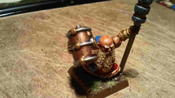 Grimmrog: Also der Bart vom Fassträger besteht aus ein paar Schichten. Grundschicht dafür is Bleached Bone und dann ein paar mal getuscht mit Gryphone Sepia und an den oberen Ansätzen mit Devlan Mud (damit er am Ansatz n bissl dunkler aussieht) und am Ende die erhabenen Stellen nochmals mit Bleached Bone akzentuiert.