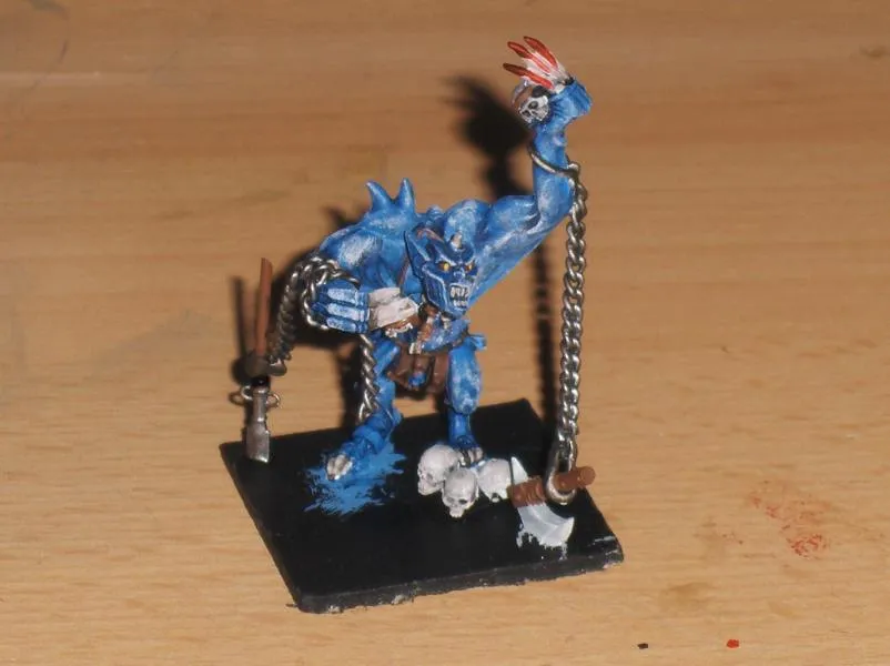 Das Blut is ne Mischung aus Normaler Farbe und Wash, also: Baal Red mit etwas Chaos Black und Rot. In 3 Schichten, bei jeder Schischt etwas mehr Chaos Black zur Mischung hinzugefügt.