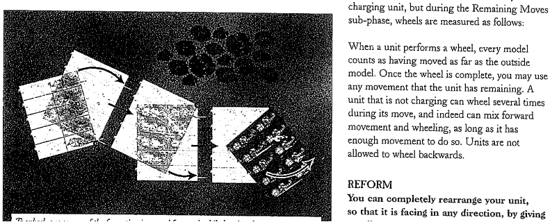Bei der Übersetzung ins Deutsche hat man Mist gebaut und einen klaren Wortlaut verkompliziert. Im englischen heißt es "a unit that is not charging", während man im Deutschen "eine nicht geradlinig angreifende Einheit" gemacht hat. Das kleine Wörtchen "geradlinig" sorgt also für mehr Verwirrung als nötig ist.Kurzum: Nein, beim Angriff darf man nicht mehrmals schwenken, sondern genau einmal um maximal 90°.