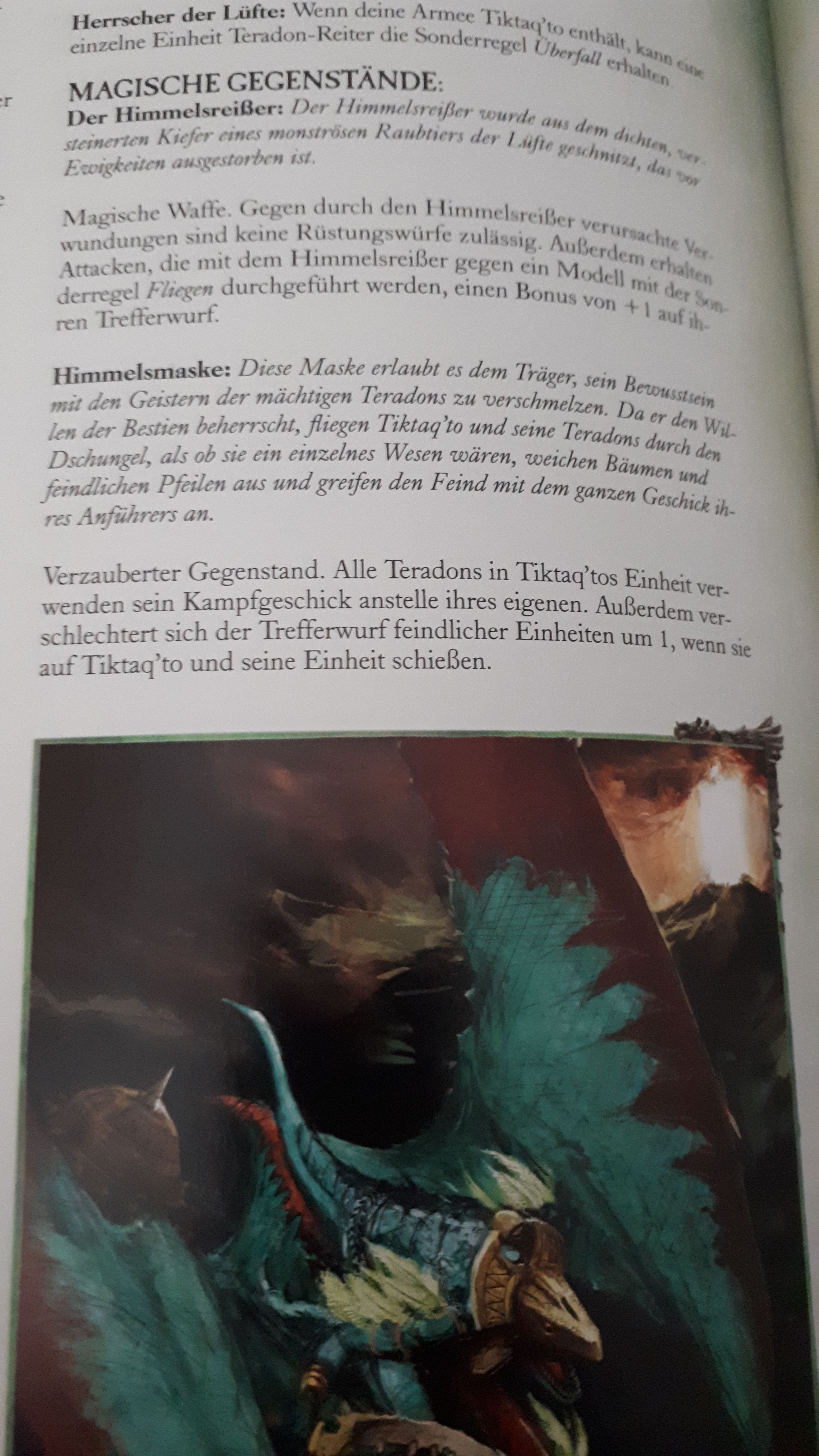 Bzgl. des besonderen Charaktermodells der Echsen ein ziemlich grober Fehler, da er Werte der Einheiten weter gibt, sich aber keiner EInheit anschließen darf. Gab leider auch nie ein Errata dazu.