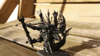 Hier ist mein Dämonenprinz aus Resten. Die Haut hab ich vor dem Grundieren mit Sand beklebt in zwei Stärken, was sowas wie einen warzigen Effekt geben soll. Mal sehen, wie das wirkt, wenn er bemalt ist.