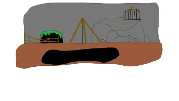 Ich hoffe man kann mit dieser schlechten Zeichnung in etwas erkennen, was ich vorhabe. Die Größenverhältnisse stimmen natürlich nicht 100%ig...Hinten soll eine große Felswand sein, mit der das ganze abgegerenz wird. In Der Mitte steht ein Gerüst, mit einer Winde daran, mit der die Skaven Dinge in die Tiefe transportieren. An der Felswand ist oben ein Tor vor einem Felsvorsprung, auf dem der Kriegsherr stehen wird. Unten in der Felswand ist eine kleine, fast zugewucherte Höhle, oder Gruft aus der vielleicht Ratten oder ähnliches Krabbeln werden.