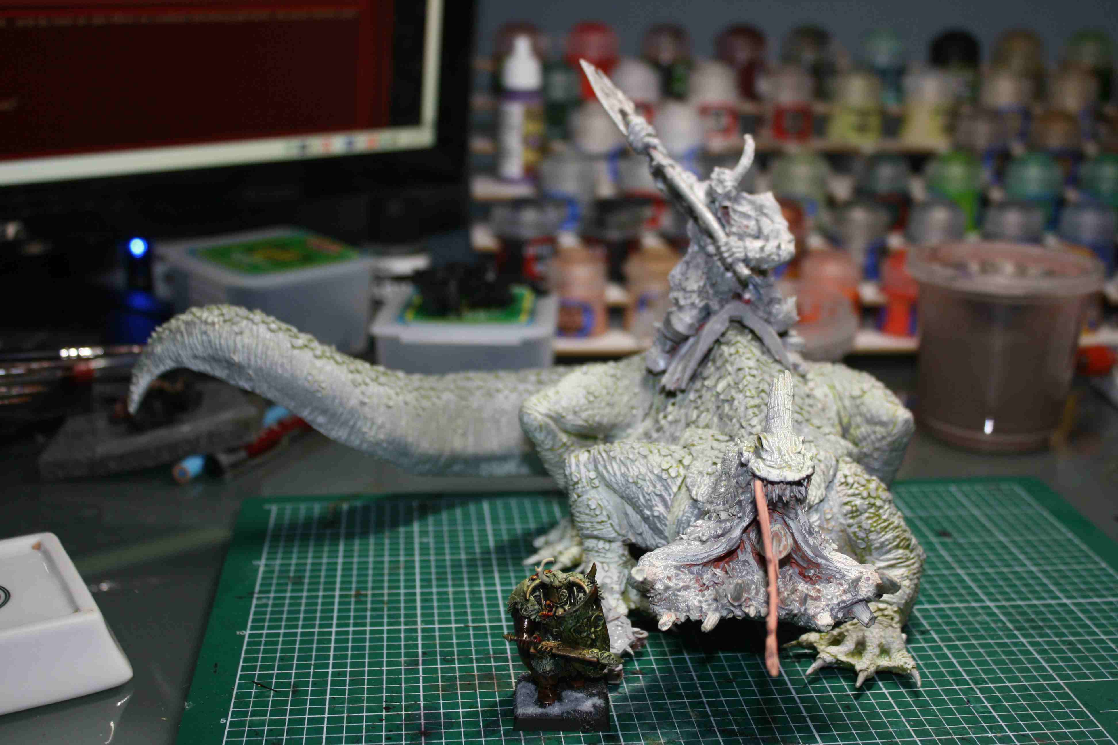 Der bleibt jetzt erstmal im Schrank eingesperrt :) und ich mach an den laufenden Sachen weiter ... in 3 Wochen sollte noch Kazyk the befouled hier ankommen ..da freu ich mich auch drauf. Habe jetzt wirklich super viele Sachen hier , die noch bemalt werden müssen . ( 10x Kingsreiter , 20x Kings, 2x Schreine , ein einhalb Streitwagen, noch ne Drohne , ne Hellcanon und dann kommt erst Herr T. drann ... )
