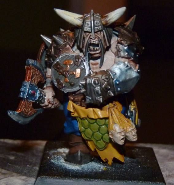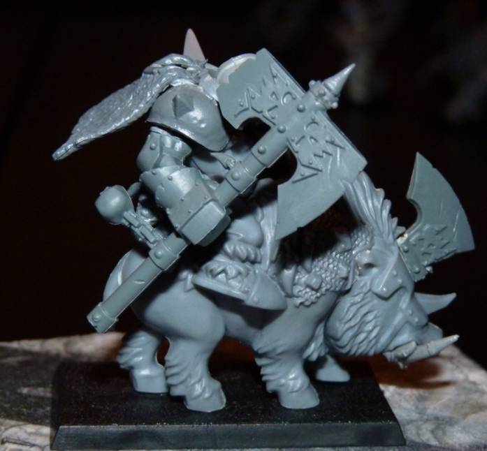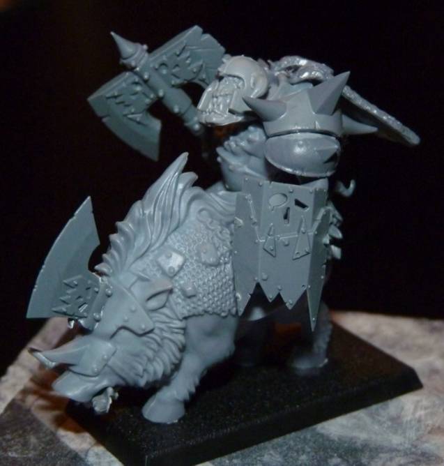 Der Kopf vom Boss ist glaub ich auch von der Streitwagenkrew, Die Arme wurden hingebastelt und mit Schulterpolstern kunstvoll das Kreuz verbreitert.Außerdem hat er einige Trophän-Köppe am Schwein befestigt (aber die sind ehrlicherweise in den Bildern nicht zu sehen)