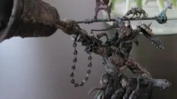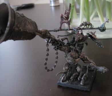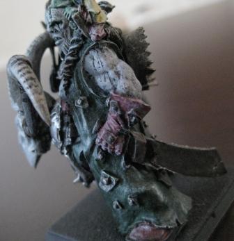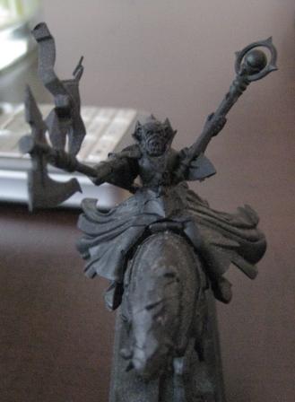 Ein Vampirfürst mit 2hangwaffe und Stab: Ein bretonisches Ross auf dem der Oberkörper des Drachenreiters des Helfen kam. Die Axt sowei der Stab sind ebenfalls elfisch, der Kopf von nem Ghoul.