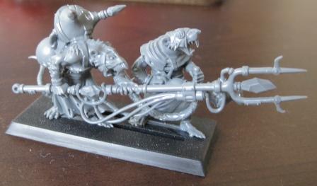 Der Skaven Kriegsherr gefällt mir am bessten, Der hat eine sehr geile Dynamik, die das ganze Modell einfach wie in der Schlacht Photografiert aussehen lässt. superklasse.
