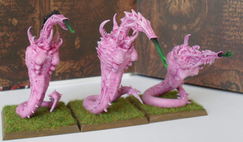Nachdem mich die wunderbaren Slaaneshbestien von Dolph84 dazu ermutigt haben den Bau meiner eigenen weiter voran zu treiben, bin ich nun sogar (nach fast 3Monaten) fertig geworden ![]()