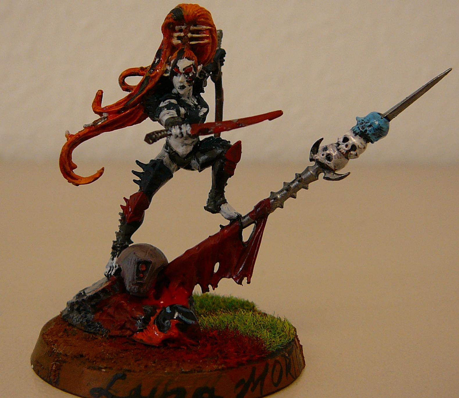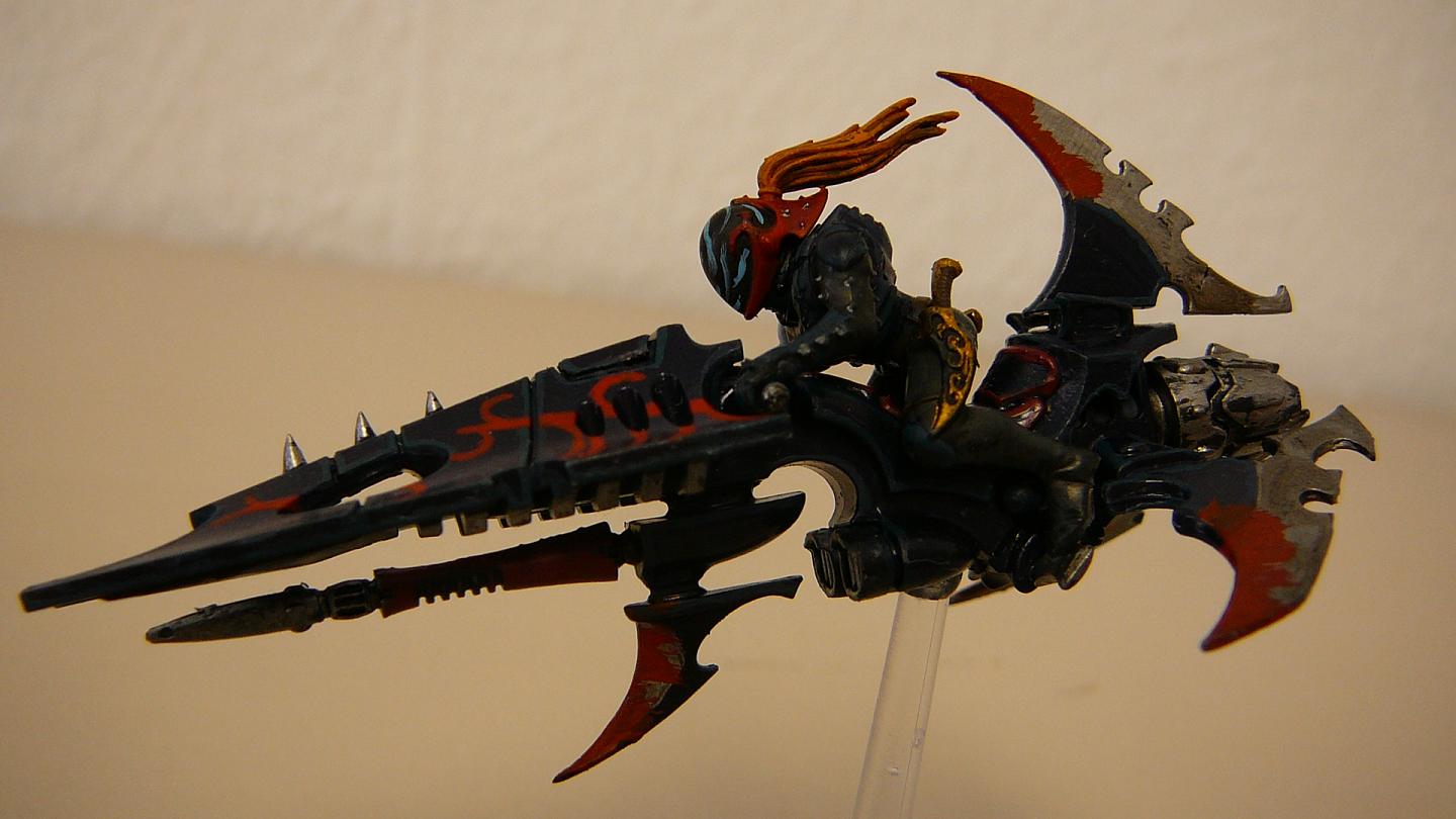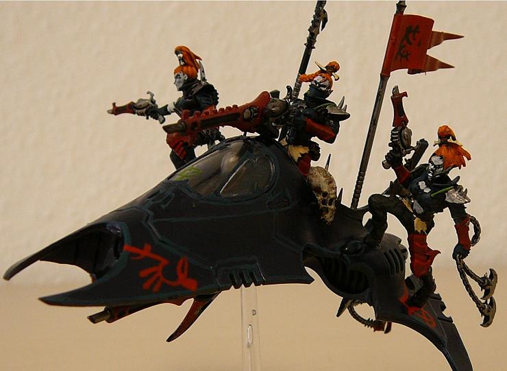 Mitunter setze ich jetz auch die von mir so geliebten Hyemshin ein und habe einen Trupp Hagashin aufgenommen, der allerdings ohne transportmittel über das Schlachtfeld schnellen soll. Die Kabalenkrieger sollen schnell von einem Ort zum anderen gelangen um dort Feuerschutz zu geben, wo es nötig wird. Die Succubus wird in den Blutbräutetrupp gesteckt und soll im Zentrum der feindlichen Armeen für Chaos sorgen. Die Hyemshin sollen wiederum wie im Codex so schön beschrieben über die Köpfe des Feindes jagen und ihn so in Angst und Schrecken versetzen und vielleicht mit etwas Glück noch ein paar Verluste verursachen.