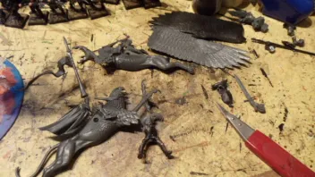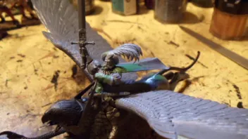 Ich war seit dem Erscheinen der Blutinsel-Box von dem Greifen begeistert. Ich kann weder Skaven noch Hochelfen gebrauchen, weshalb ich die Box auch nie gekauft hab. Zum Glück konnte ich nem Kumpel den Greifen einzeln abkaufen. Der Plan ist, den HE-Prinzen durch einen General des Imperiums zu ersetzen. Komischerweise hab ich nirgends im Internet einen ähnlichen Umbau gefunden, dabei ist die Idee doch naheliegend. Heute hab ich das Projekt mal in Angriff genommen und musste feststellen, dass die Sache mit "einfach den Reiter austauschen" nicht getan ist. Zunächst mal, musste ich die Unterschenkel von Altran abschneiden, weil die fest mit dem Körper des Reittiers verbunden sind. Dann hat sich rausgestellt, dass die Reiterbeine von den Rittern der Reichsgarde nicht breitbeinig genug sind. Nachdem ich die Beine aufgeschnitten hatte und nach einigen Mühen dann angeklebt hatte, wollte ich die Flügel anstecken. Blöderweise saßen die Reiterbeine aber zu weit hinten. Also noch mal alles abgemacht und die Steigbügelriehmen abgehobelt, damit der Reiter weiter vorne sitzen kann. Soweit so gut. Das nächste Problem sind die Zügel, die fest mit dem Greifen verbunden sind. Einfach abschneiden ist nicht drin, weil die auf den Federn aufliegen, wodurch die nur sehr schwer zu entfernen wären. Außerdem würd ich die schon gerne dranlassen. Die Sache ist nur, dass die Zügel praktisch zu weit nach hinten reichen, wenn ich also den Torso aufsetzen würde, wäre die Zügelhand irgendwo im Brustkorb. Das liegt daran, dass Altran sich schnittig nach hinten lehnt, die Ritter der Reichsgarde aber aufrecht sitzen. An dem Punkt kam ich ohne Greenstuff einfach nicht mehr weiter. Wie's das Schicksal wollte, hab ich aber gerade kein GS im Haus. So kam die Arbeit erst mal zum erliegen.