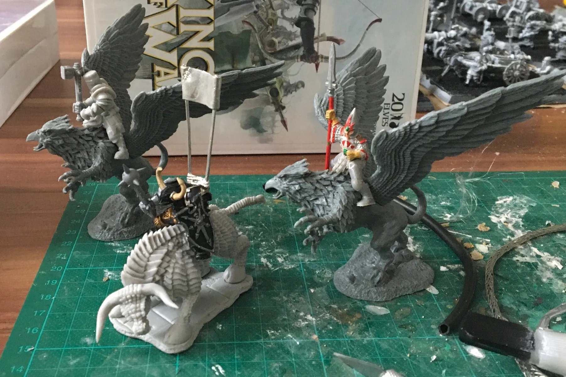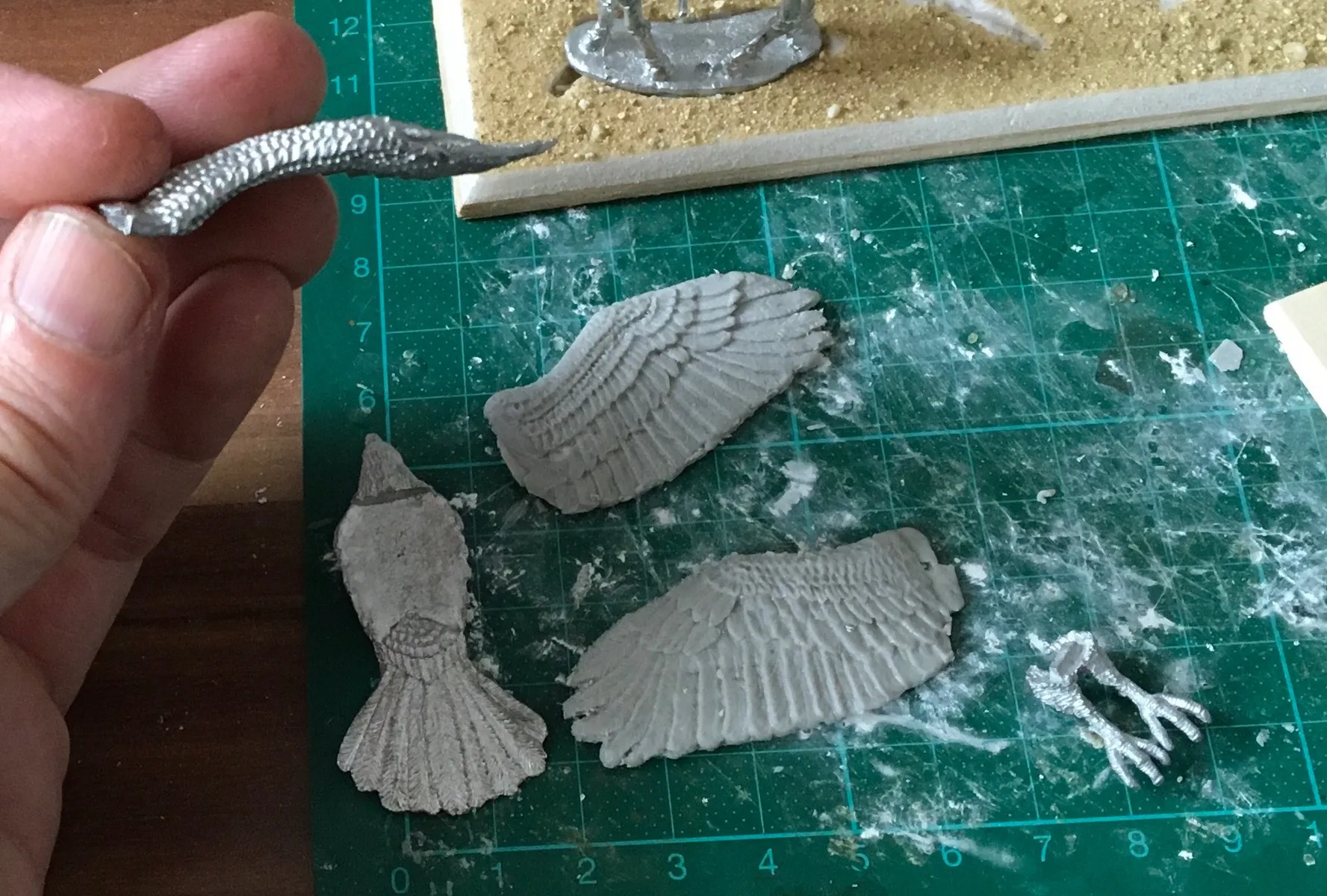 Ich hab einen Riesenadler gekauft, der nur mit 1 Flügel ankam. Nachdem das den Leuten von Battlefield Miniatures relativ sehr egal ist was Kundensupport betrifft, mache ich mir nun einen zweiten